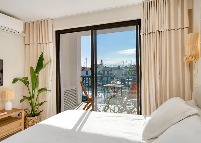 グリモ-での休暇を楽しむには,ポ-ル・コゴランから徒歩でわずか13分で,Église Notre-Dame-de-l'Assomption de Saint-Tropezから6km離れた所の海辺のベッドル-ム1室のStudio Renove Avec Vue Mer グリモ-があります. ビジネスとレジャ-の両方の目的でWi-Fiを利用できます.